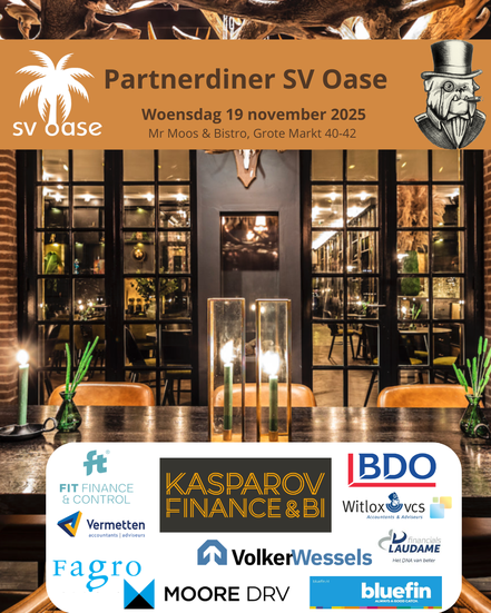 Weet jij al wat je na je studie Finance & Control wil gaan doen of twijfel je nog. Neem dan volgend jaar deel aan het Partnerdiner van SV Oase. Het Partnerdiner vindt dit jaar plaats op